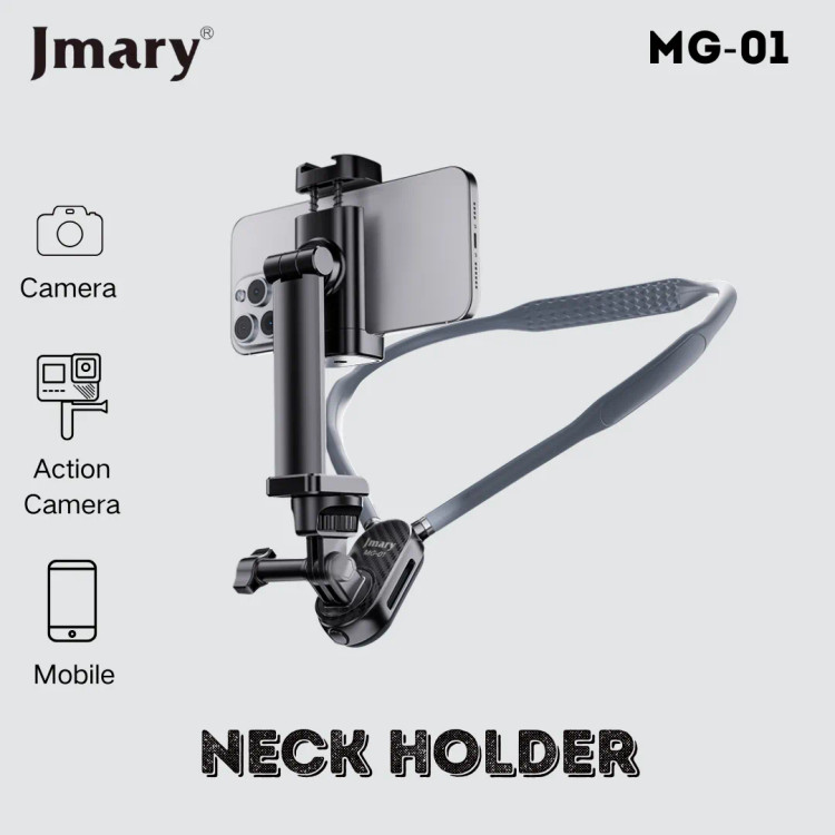 هولدر گردنی Jmary MG-01 ابزاری است کاربردی و راحت برای کسانی که میخواهند بدون استفاده از دست، با موبایل یا دوربین کوچیک فیلم بگیرند، ویدیو درست کنند، یا حتی راحتتر فیلم نگاه کنند. این مدل برای تولید محتوا، ولاگ، کلاس آنلاین، آموزش، آشپزی یا کارهای روزمره فوقالعادهست.