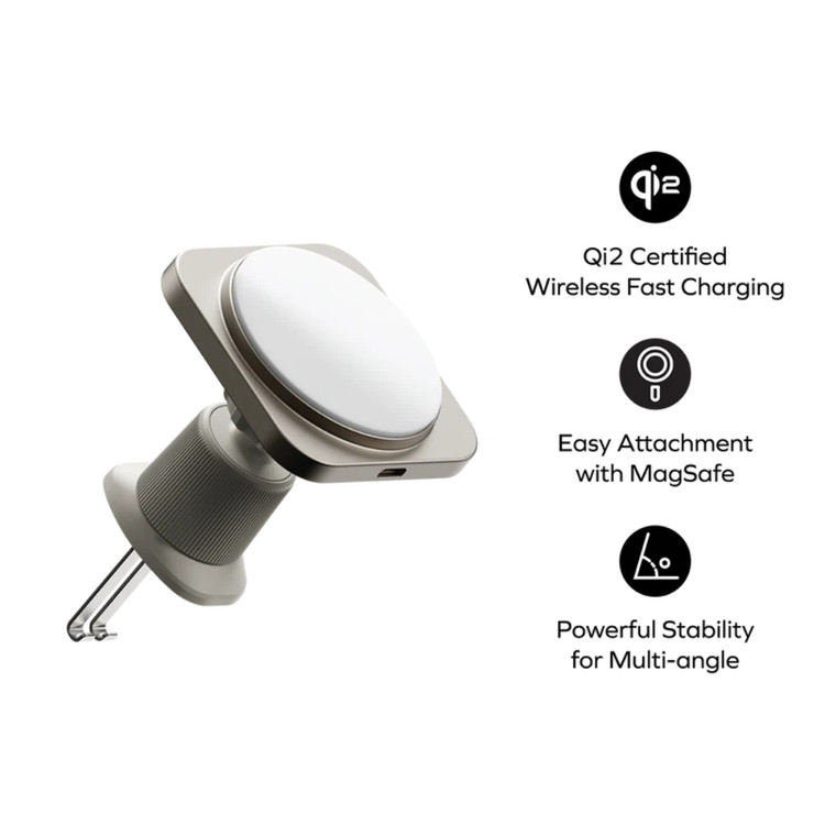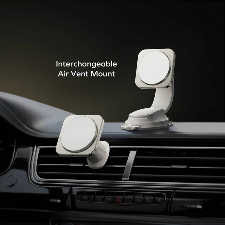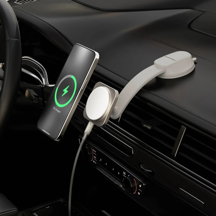 Momax Q2.Mag Mount Qi2 یک هولدر + شارژر بیسیم مغناطیسی برای ماشین است که تجربهٔ استفاده از گوشی در خودرو را بهکلی تغییر میدهد. این هولدر مجهز به فناوری Qi2 با شارژ سریع تا ۱۵ وات است؛ یعنی کافی است گوشیات را نزدیکش بکنی تا بدون سیم، با سرعت مناسب شارژ شود.