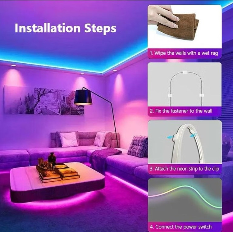 Axiom Neon LED Light RGB 3M با طول مناسب و انعطاف بالا، نصب ساده و استفاده آسان، برای کسانی که میخواهند فضای داخلی خانه یا محل کارشان را با نور زیبا و رنگی تزئین کنند مناسب است. طراحی نئون (نه فقط LED نواری ساده) باعث میشود نور خروجی یکنواخت و چشمنواز باشد — یعنی برخلاف نواری که چراغها دیده میشوند، این نوع نورپردازی جلوه حرفهایتر و تمیزتری دارد.