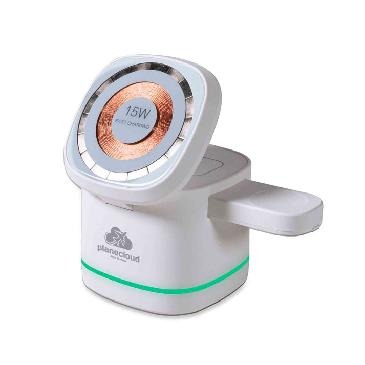شارژر بیسیم MagWire 3in1 Cube اولین چیزی که توجه را جلب میکند، طراحی کمحجم، مدرن و مکعبی آن است که ظاهر شیک و چشمنوازی به میز کار یا اتاق میدهد. اگر از چند دستگاه همزمان استفاده میکنی، قابلیت شارژ ۳ دستگاه بهصورت همزمان باعث میشود دیگر نیازی به چندین پایه شارژ یا کابل نداشته باشی و همه دستگاهها را در یک جای مشخص شارژ کنی